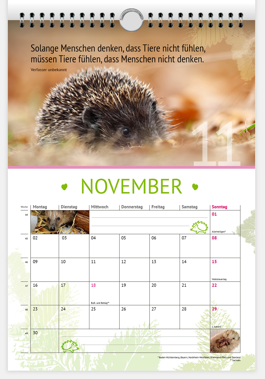 Welt der Igel Wandkalender – Din A4